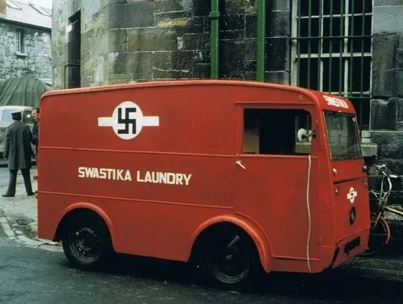 Brittain liked the swastika as symbolizing good fortune, becoming a popular decorative motif in the West during that time. Therefore, the company used the swastika emblem prominently in its branding, placing it on everything from laundry bags to its delivery vehicles.