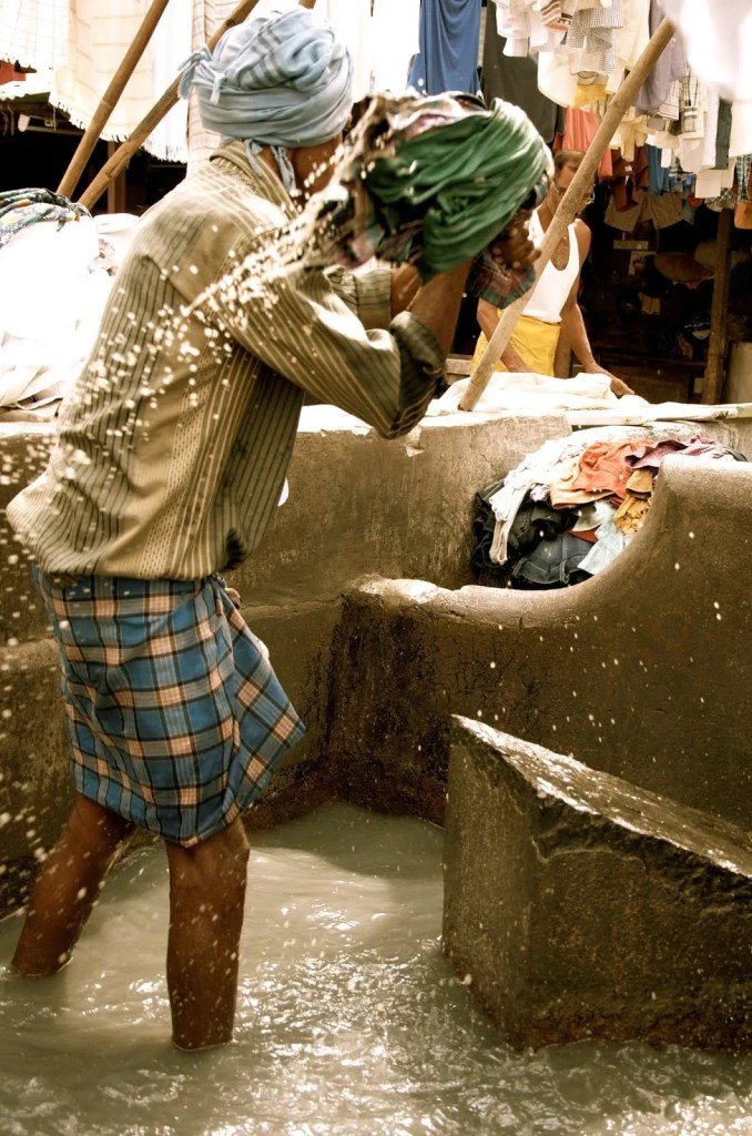 The Dhobi (which translates as ‘washerman’) is a caste group who are specialists in washing clothes – the job is hereditary. There are about 731 of them working in the Dhobi Ghat. These washermen are mostly migrants from other parts of India – who live in situ with their families. The Dhobi Ghat – a registered organisation itself – was built in 1890 to service the English and Parsi population of the city.