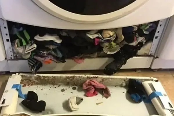 Then there’s the space between the drum and the door of the dryer. Most dryers have a small gap at the drum’s edge to allow it to rotate freely. Unfortunately, socks can occasionally get caught in this narrow space and slip into areas that aren’t easily accessible.