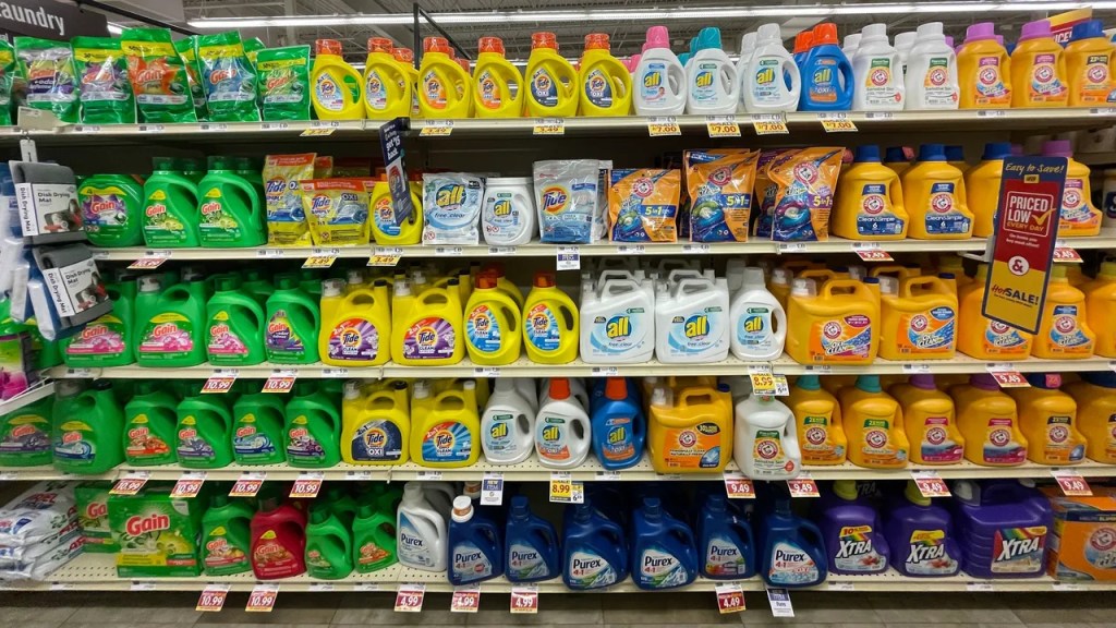 Here’s a breakdown of the usual suspects hiding in that cheerful bottle on your laundry shelf: