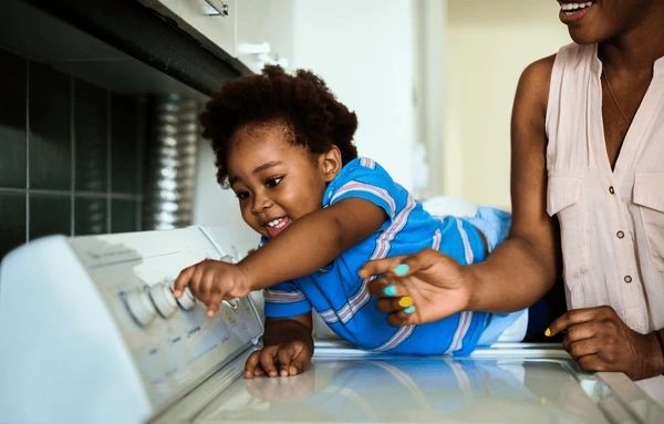 - Teach appliance safety: no climbing, keep doors closed, and hands dry when plugging/unplugging.