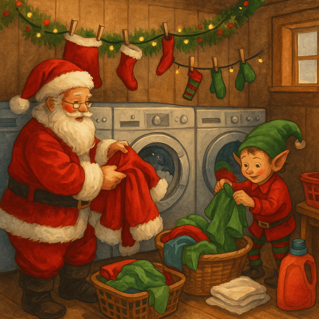 There’s no magic dust for laundry. No spell, no wand wave, no enchanted bubble. Santa’s world may run on Christmas spirit, but even magic can’t remove chimney soot, cookie crumbs, and the mysterious reindeer residue that finds its way onto red velvet.