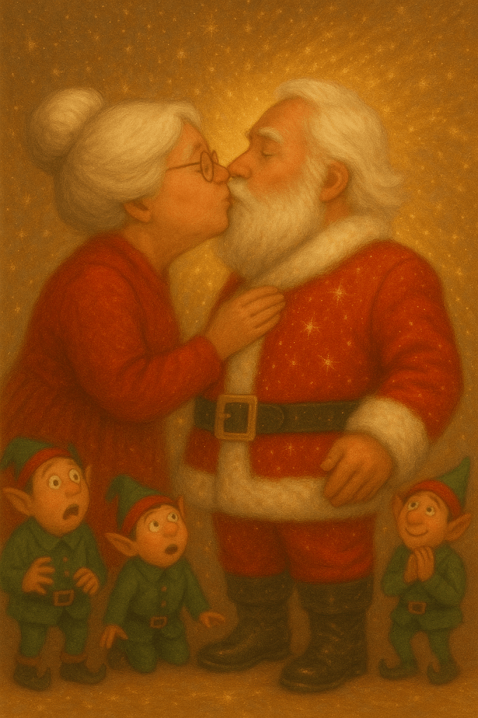 She turned, lifted Santa’s chin with one hand, and kissed him.